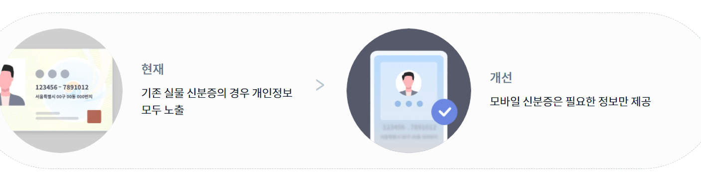2. 현재 신분증은 개인 정보가 모두 노출 됐지만 모바일 신분증은 필요한 정보만 제공할 수 있습니다.